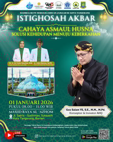 AHQNews - Mengawali tahun baru 2026 dengan doa dan kesadaran ruhani, ribuan jamaah dari Kota Tangerang dan wilayah Jabodetabek diundang untuk menghadiri Istighosah Akbar Asmaul Husna yang akan diselenggarakan pada Kamis, 1 Januari 2026, bertempat di Masjid Raya Al A’zhom Kota Tangerang, Banten.