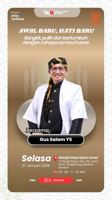 Di antara pintu besar yang beliau bukakan untuk saya adalah konsep AHQ, Asmaul Husna Quotient. Sebuah pendekatan kontemporer dan aplikatif terhadap nama-nama indah Allah yang selama ini hanya saya kenal secara teologis atau sekadar pelengkap doa.