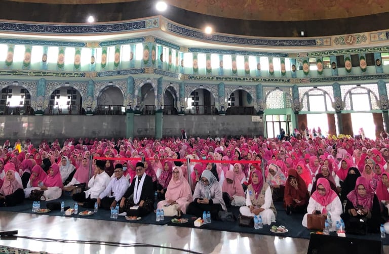 Sekitar 3.000 jamaah dari 13 Majelis Taklim se-Kota Tangerang memadati area masjid sejak pagi. Mereka datang dari latar belakang yang beragam, ada yang datang bersama keluarga, ada yang sendiri, ada pula yang tampak menunduk lama dalam doa. (AHQ)