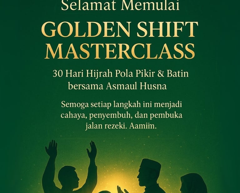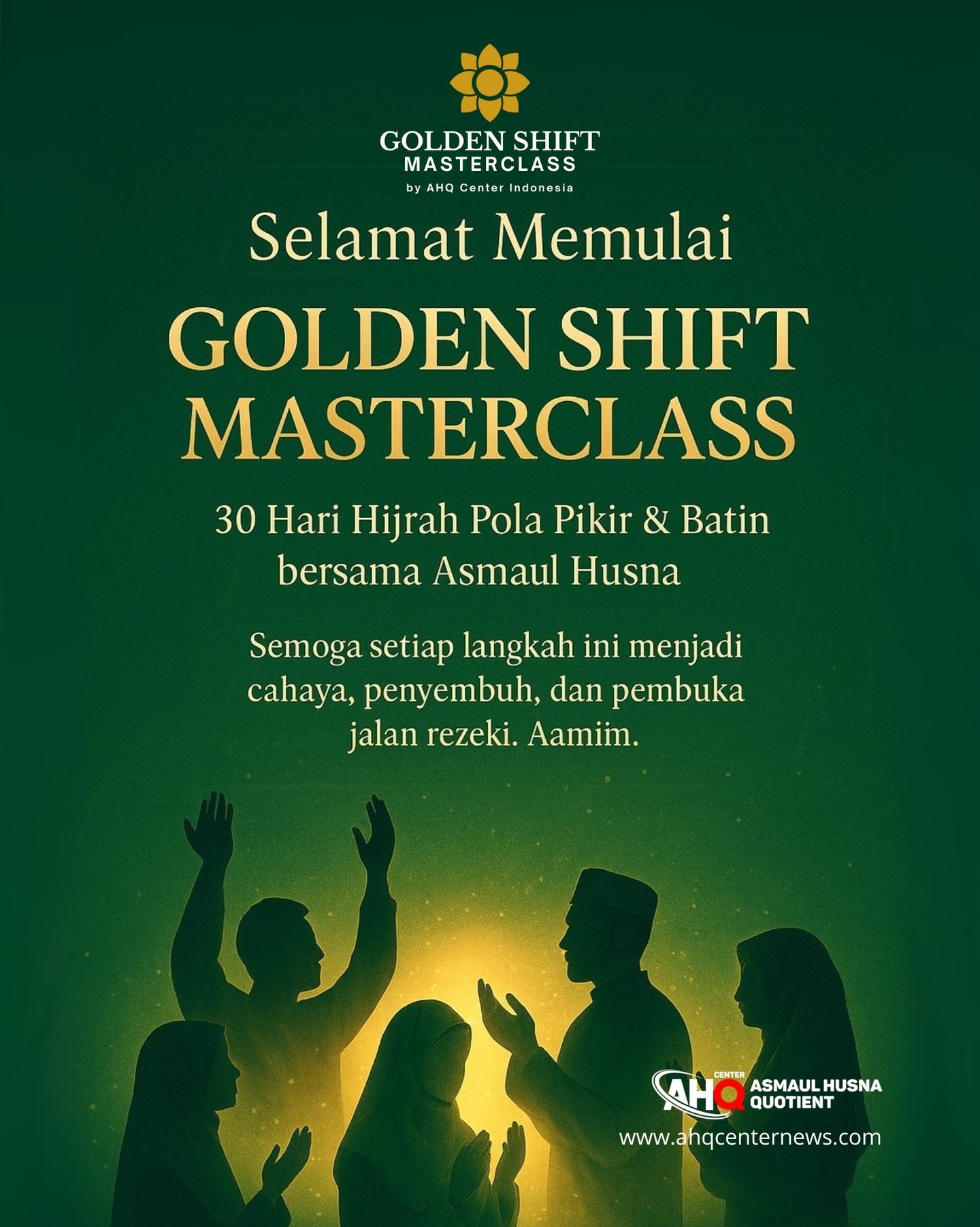 Pelatihan Golden Shift Masterclass (GSM): 30 Hari Mind Shifting Bersama Asmaul Husna yang diinisiasi AHQ Center Indonesia dimulai Selasa, 5 Agustus hingga 3 September 2025 kedepan. Sebanyak 117 peserta mengikuti cara mudah mengenal diri dan Allah melalui Nama-Nama indah Allah.