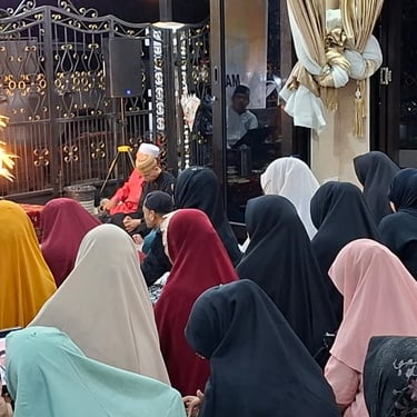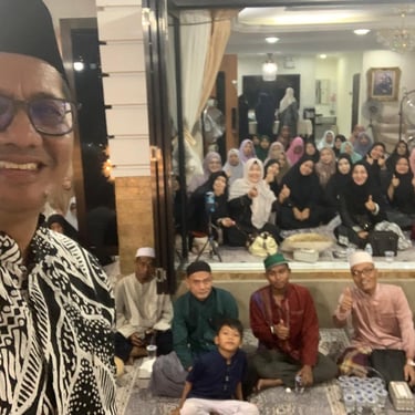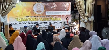 AHQNews, BATAM - Puluhan jemaah MR Fatimah Az-Zahra Aqisch Batam larut dalam kekhusyukan dzikir Asmaul Husna, Rabu (01/10/2025) malam. Mimik jemaah pun terlihat adem, damai dan tenang mengikuti alunan salawat dan dzikir yang dibimbing Konseptor dan Inovator AHQ, Gus Salam YS.