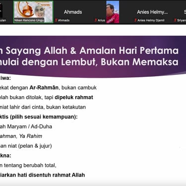 Pada lima hari awal Ramadan ini, ia mengajak peserta merasakan sesuatu yang sering terlewa, Allah sedang mendekat dengan rahmatNya, bukan dengan cambuk. Jiwa yang lelah tidak ditolak, ia dipeluk.