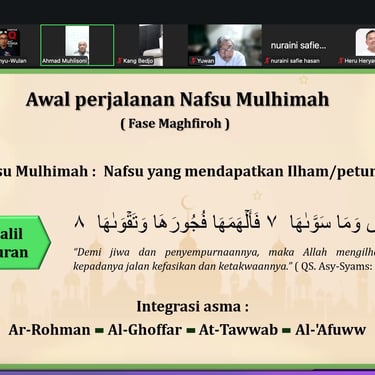 Hal itu disampaikan Ustaz Ahmad Muhlisoni dalam Kajian Pesantren Ramadan Online AHQ yang digelar via Zoom, Selasa (3/2/2026) malam. Menurutnya, perjalanan ruhani manusia bergerak melalui beberapa level nafsu. diantaranyanafsu amarah, lawwamah, hingga mencapai nafsu mulhimah.