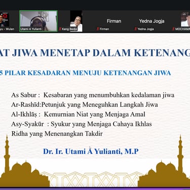 Dalam kajian Pesantren Ramadan Online AHQ yang digelar melalui Zoom Meeting pada Minggu (8/3/2026) malam, Ustazah Dr Ir Utami A Yulianti MP menjelaskan, bahwa tujuan utama perjalanan spiritual seorang mukmin adalah mencapai jiwa yang tenang (nafs muthmainnah).